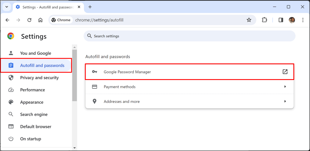 - Open the Autofill and passwords tab in the sidebar and select Google Password Manager.