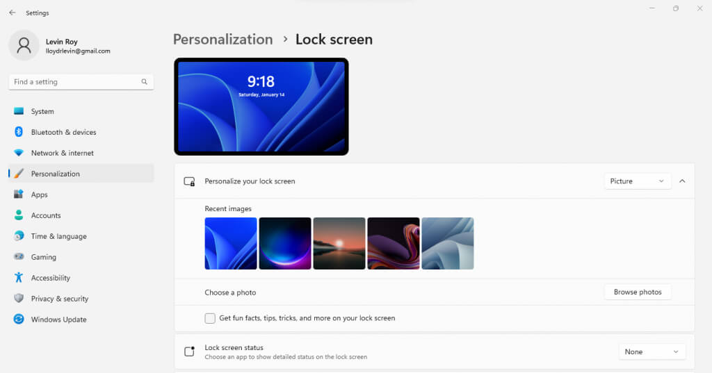 - Select the Lock screen option, as that’s where you can personalize what your desktop shows when idle.