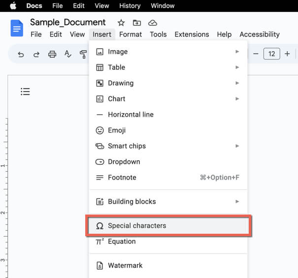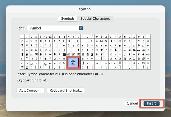 Additionally, desktop-based word processors offer a special character insertion tool you can use to type the copyright symbol. Here are two quick examples.