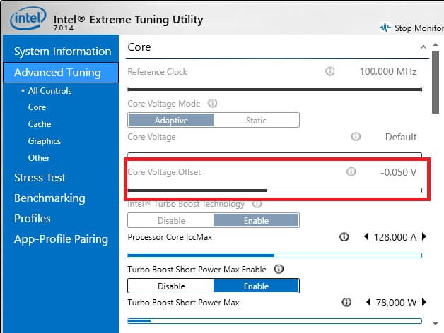 **NOTE: **If you see that Core Offset Voltage is greyed out, this is possibly due to a security patch that some OEM (Original Equipment Manufacturer) have implemented. This mainly affects laptops, but can also be true of certain prebuilt desktop systems.