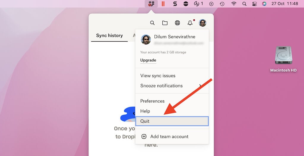 If you use Dropbox on a Mac, you can remove it just like any other application by moving it to the Trash. But first, you must stop Dropbox’s sync service from running in the background.