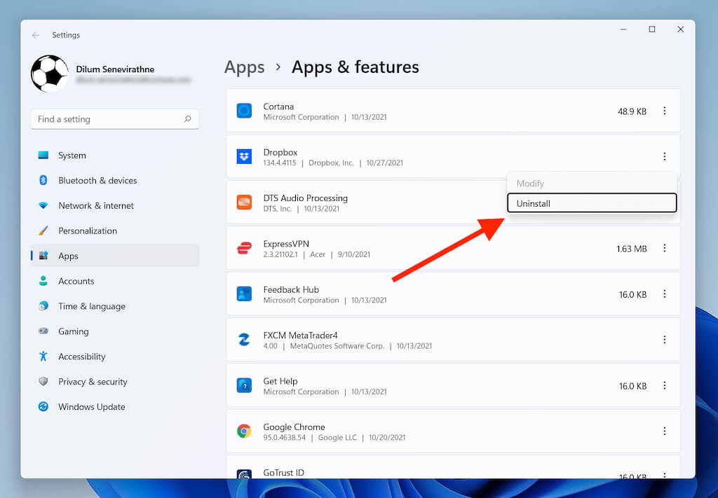 Whether Dropbox came pre-installed on your PC or you installed it yourself, you can uninstall it quickly by visiting the Apps and Features pane on your PC. However, you must stop the cloud storage service from running in the background before you do that.