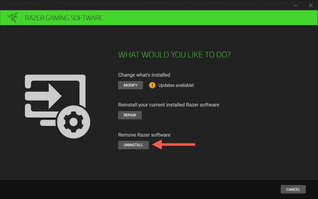 - On the Razer Gaming Software window that shows up, select Uninstall.