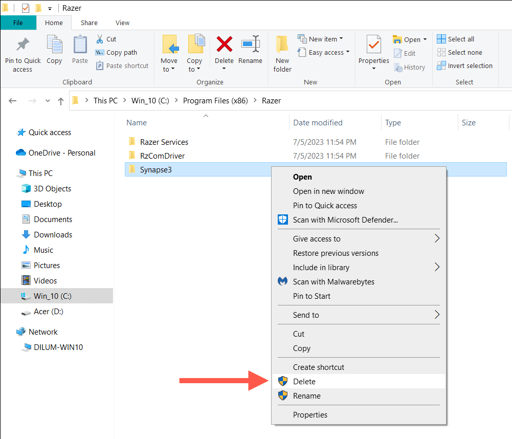 Razer Synapse leaves its installation folder, which contains miscellaneous items related to the application, behind. It’s safe to delete manually. Here’s how: