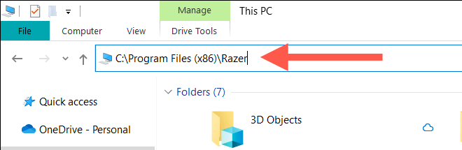 - Repeat steps 1–3, visit the following directories, and remove Razer-related files and folders: