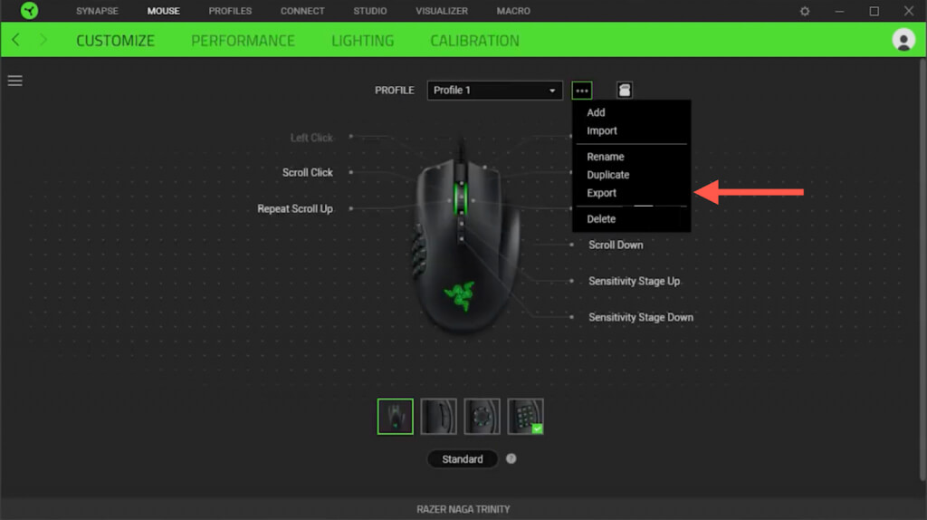 Your data should be synchronized with Razer’s servers if you have a Razer ID. However, if you don’t, you can export the profiles manually. To do that: