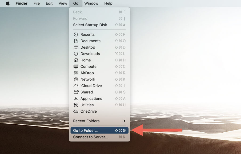 - Open Finder and select Go > Go to Folder on the menu bar.