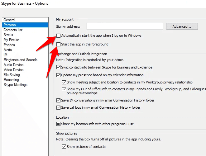 - Uncheck the **Start the app in the foreground **box and the **Automatically start the app when I log on to Windows** box, and then click **OK**.