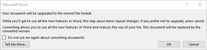 - Click on Tell Me More if you’d like to know more about the process. Also, if you don’t want to see this dialog box for future conversions, checkmark the checkbox.