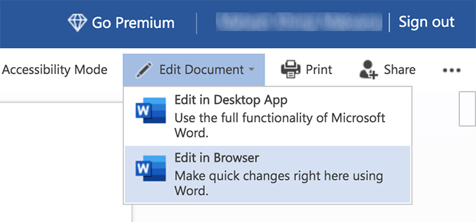 When the file is uploaded and is open on your screen, click on the Edit Document option and then select Edit in Browser.