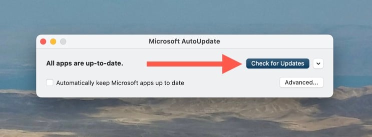- Select **Check for Updates** on the Microsoft AutoUpdate utility to initiate a scan for new Office updates.