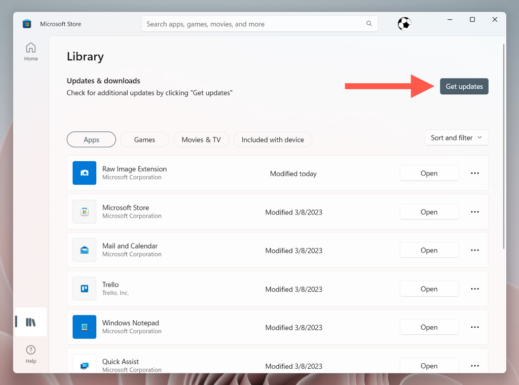 - Open the Microsoft Store and select Library.