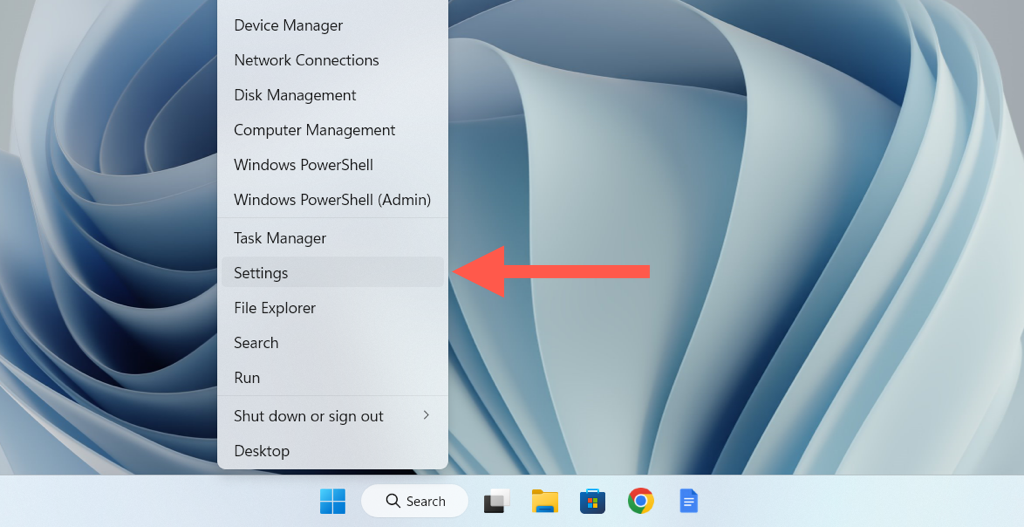 - Right-click the Start button and select Settings.