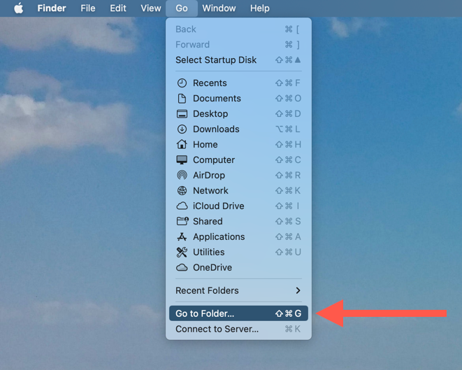 - Open Finder and select Go > Go to Folder on the menu bar.