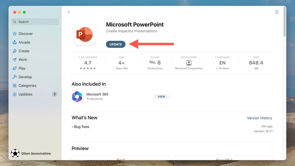 Update Microsoft PowerPoint on Apple Mac