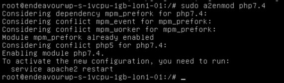 - The latest version of PHP will be installed, but you’ll need to change which version of PHP is used by your web server. If you’re using Apache, type** sudo a2enmod phpx.x **(replacing x.x with the correct version) to change your Apache server settings, then restart Apache by typing sudo systemctl restart apache2 or sudo service apache2 restart.