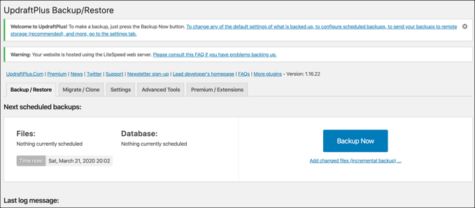 For DIY servers, it’s on you—you’ll need to back it up manually. If you’re afraid of hitting the terminal, use a plugin like UpdraftPlus to make regular backups of your WordPress installation automatically. UpdraftPlus can store your backups off your server, taking advantage of cloud storage services like Google or Microsoft Azure.