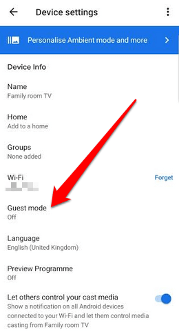 - In the **Device Settings** screen, scroll down and find **Guest Mode**. If you don’t see Guest Mode, then your Chromecast device doesn’t have the feature.