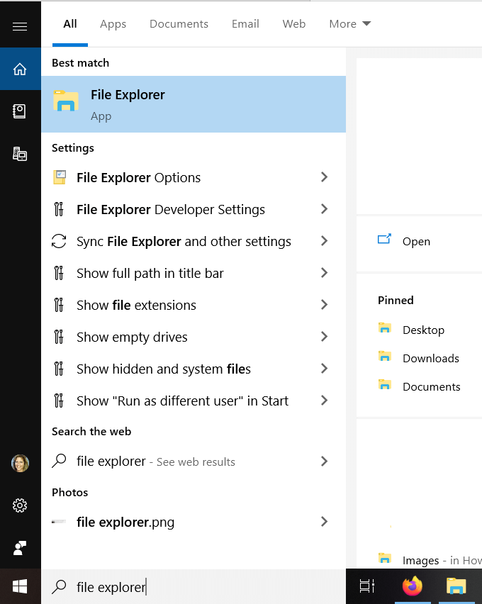- You can also open File Explorer by typing file explorer in the Windows search bar.