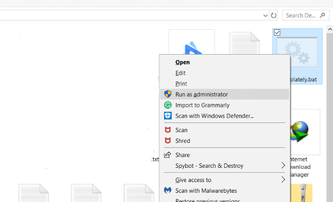 - Once you can save your text file with .txt extension, rename it with a .bat extension. Right-click on your new .bat file and choose Run as Administrator.