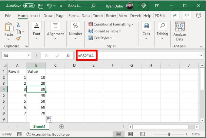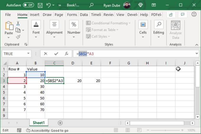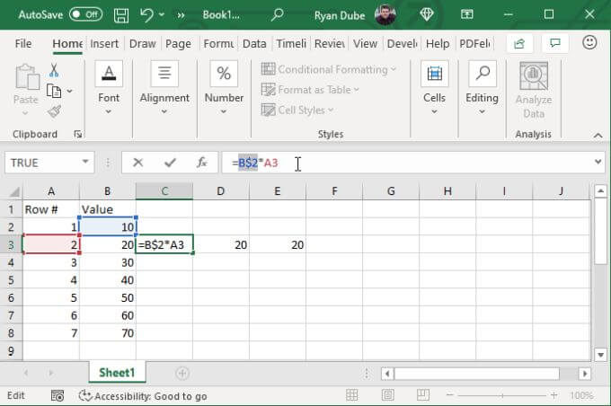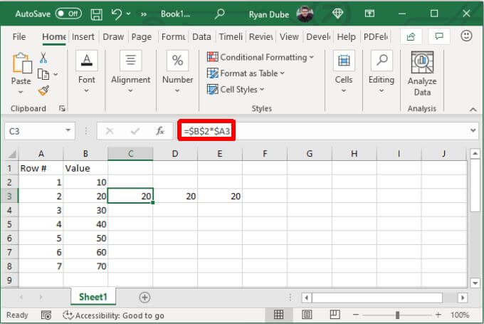Let’s take a look at how to use absolute references instead of mixed references to make filling in both directions work properly.