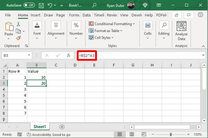 In this case, we want the following behaviors when filling to the right. * Always reference the value in cell B2