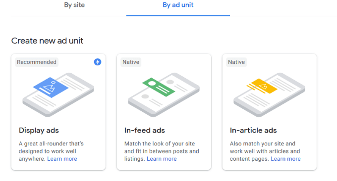 - You can choose by site or by ad unit. Follow the directions below to use by site.