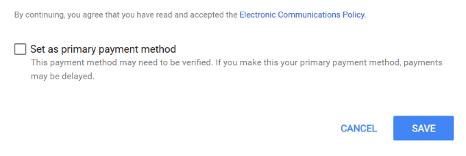 - Enter your bank account information in the Add a payment method section. Tick the box next to Set as primary payment (if that’s what you want) and click Save.