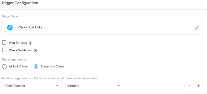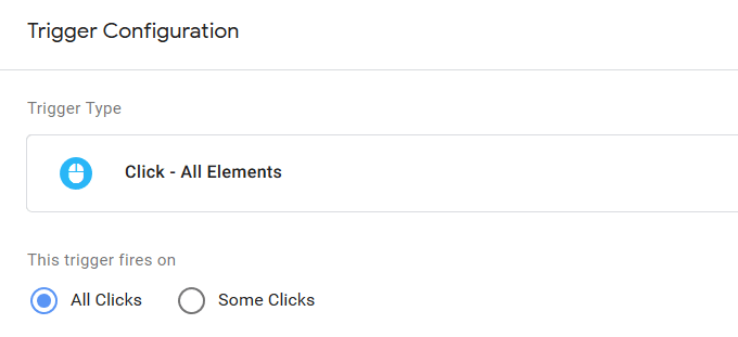 - Make sure you set This trigger fires on All Clicks and click Save.
