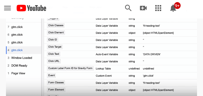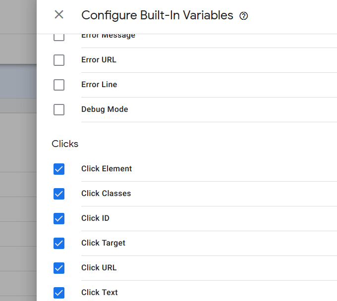 - If you want to identify a specific button on a page, select one of the clicks in the Google Tag Manager preview panel. Then click Variables.