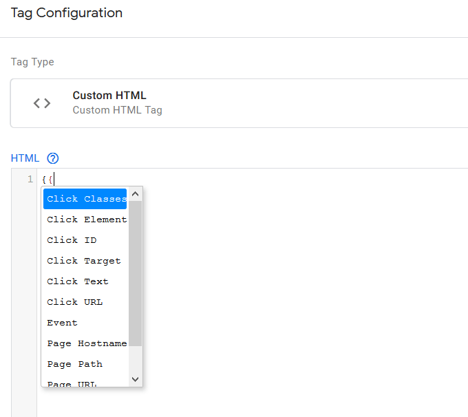 - You can use variables inside this Custom HTML section by typing them inside these brackets { }.