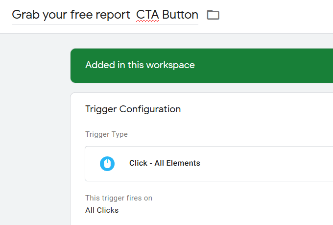 - Your new trigger and new tag are now live on your website to track any time a site visitor clicks on the button.