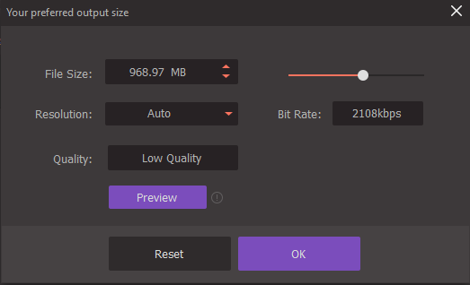 A pop-up window will appear. Use the slider to increase or decrease the file size.