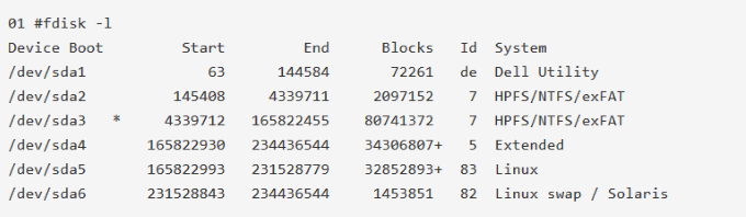 The size and partition type show that the **/dev/sda5 **directory is the main partition. You have to mount this partition so start by first creating a directory that will be the mount point. mkdir /mnt/bootdir