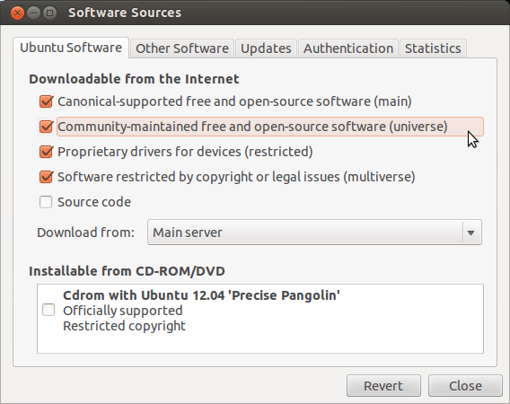Click on Software and Updates and then choose Community-maintained free and open-source software.