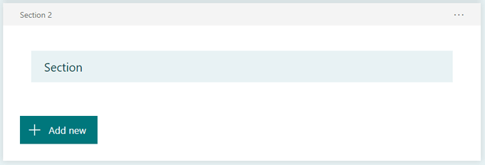 Add a new section. Choose this if you want to create sections within your form. You can add, delete, and move sections just like you can questions.