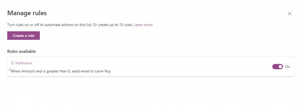 - You can head to Rules > Manage rules at any time to view the rules running on a list and disable them with a click.