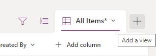 - To create a new view, open a list and slick on the Add a view button on the right (with the + icon).