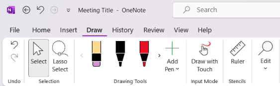 OneNote also supports digital handwriting and drawing using a stylus, touchscreen, or mouse.