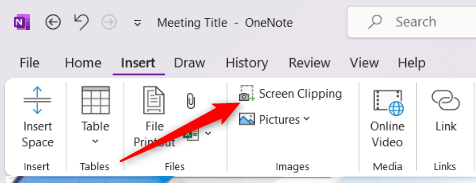 To create a screen clipping, click the Insert tab in the Ribbon and select Screen Clipping.