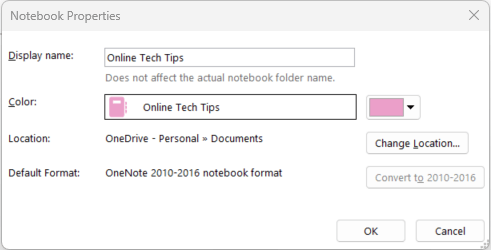 You’ll need to find the Notebook in the location you stored it when you created it to rename it, as you can’t do it directly from OneNote. You can change the display name of the Notebook by right-clicking the Notebook’s name, selecting Properties, and then changing the name next to Display Name. However, this doesn’t affect the actual name of the Notebook folder.