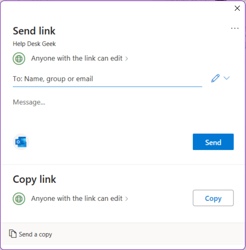 - Choose your sharing options (view-only or editable access). You can share the notebook via a link or send invitations to specific people by entering their email addresses.