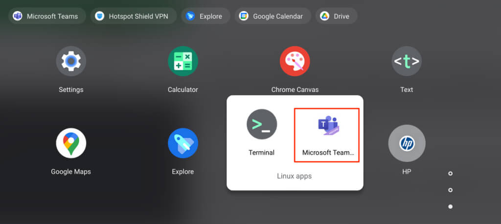 Check the “Linux apps” folder forMicrosoft Teams if you don’t find the app in the launcher.