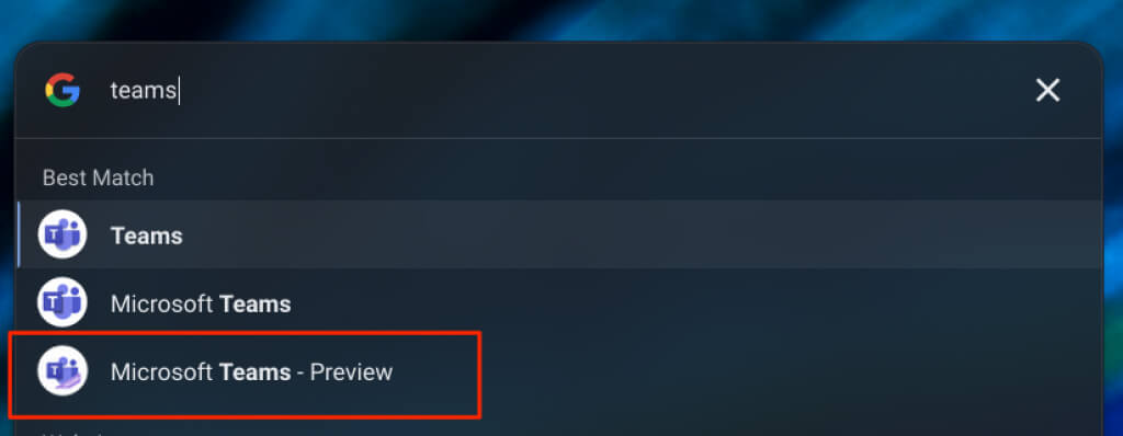 Press the Search keys and launch “Microsoft Teams – Preview” in your Chromebook’s launcher.