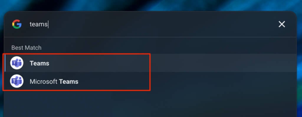 Note: Chrome OS labels the Microsoft Teams app installed from the Play Store “Teams.” We advise against naming the web app shortcut “Teams,” especially if you also have the Android app on your Chromebook.