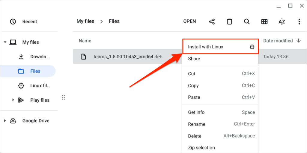 - Open the FIles app, double-click or right-click the setup file, and select Install with Linux.