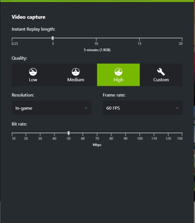 Change NVIDIA Shadowplay Settings