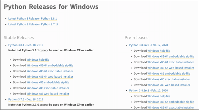 Support for the last release of Python 2 (Python 2.7) ends in 2020, however, so at this stage, it’s probably best to stick with installing Python 3. * To get started with Python, you’ll need to head to the Python website and download the installer for the latest release. As mentioned, we recommend you download the latest Python 3 Stable release.