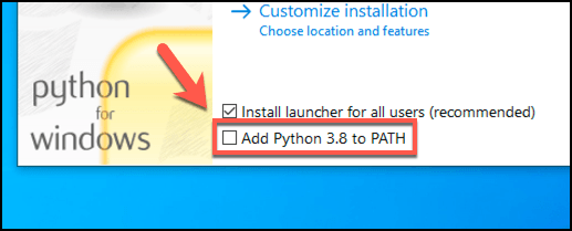 - Once downloaded, run the Python installer. You’ll be presented with a very easy-to-use installer menu, with options to run the installer with automatic settings or customize it prior to installation. Before selecting either option, however, press the Add Python to PATH checkbox at the bottom to add Python to your PATH variable. This will make it easier to run Python from a command line or PowerShell by simply typing python, rather than the full path.