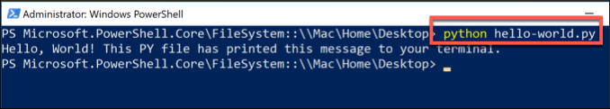 - This is great for testing and learning Python, but the Python interpreter is also used to run longer files with Python code, as well as compiled Python software. You can do this by typing **python filename.py **or **py filename.py **at a PowerShell window, replacing filename.py with your Python file. Use an equivalent to filename.pyc to run compiled Python files with the PYC file extension.
